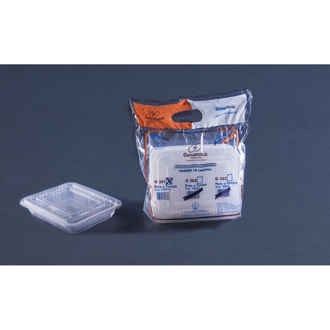 G301 – POTE RETANGULAR 1000ML C/ TAMPA PC. C/10CJ GALVANOTEK